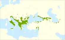 A dialectal word which has been adopted in the literary language as the standard designation for "hornbeam". Unattested in Old or Middle Armenian. Confined to northern, northeastern and eastern peripheral dialects, which corresponds to the geographical range of the hornbeam (see the maps). Note that the by-form *բուքի (*bukʻi) reconstructed by Martirosyan on the basis of rural Karabakh պո̈ւ՛քի (pǘkʻi) found in Ačaṙean 1913 is misguided; the latter does not mean "hornbeam" but is rather a by-form of բոխի (boxi, “horse fennel”).[1][2]