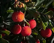 Possibly somehow related to Spanish madroño, Portuguese medronho (“strawberry tree and fruit”), Catalan maduixa (“strawberry”), Basque martsuts, martuza (“blackberry”), Lombard mạtū́ (“raspberry”). For these and some other Romance words see Schuchardt, FEW and Grzega, without the connection to մաթուզ (matʻuz).[1][2][3]