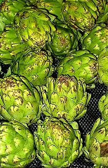 Ultimately from Italian articiocco, itself from Occitan artichaut, from Old Spanish alcarchofa, from Andalusian Arabic الْخَرْشُوف (al-ẖaršúf), from Arabic الْخُرْشُوف (al-ḵuršūf).