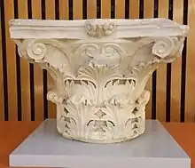 - capital, the usually decorated uppermost part of a column
