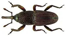 - wheat weevil, a common species of weevil that causes damage to harvested grain (Sitophilus granarius)