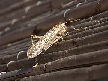 جراد • (jrād) m (collective, singulative جرادة f (jrāda), plural جرادات (jrādāt))