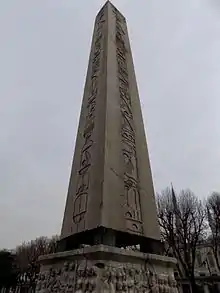 مِسَلَّة • (misalla) f (plural مِسَلَّات (misallāt) or مَسَالّ (masāll))