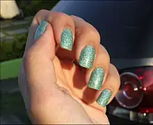 - nail polish, a cosmetic lacquer applied to the fingernails or toenails