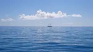 19th century borrowing from Arabic أُفُق (ʔufuq) as a substitute of ܐܘܪܝܙܘܢ (ʾōrīzōn) attested in Classical Syriac; compare also borrowed into Hebrew אֹפֶק (ófek).