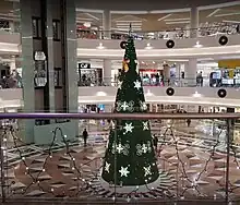 - shopping centre, mall (large retail outlet consisting of several shops)