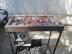 अँगीठी • (aṅgīṭhī) f (Urdu spelling انگیٹھی)