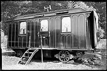 - Sense as “caravan (vehicle)” conflated with English caravan, a cognate.