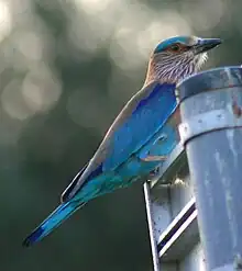 Coracias benghalensis on Wikimedia Commons.Wikimedia Commons