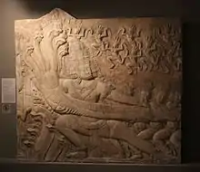 the nāga Vāsukī being pulled by demons during the churning of the Milky Ocean, a sculpture at Suvarnabhumi Airport, Thailand