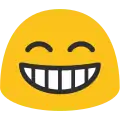 A face with smiling eyes and full-toothed grin, as if saying Cheese! for the camera. Teeth may be smoothed-over or crosshatched.