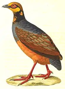 1. A taxonomic species within the family Phasianidae – the chestnut-bellied partridge.