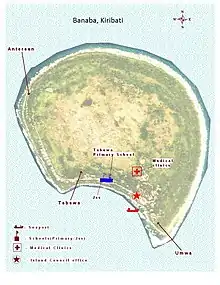 1. An island in Kiribati, in the Pacific Ocean, a former site of phosphate mining.