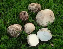 - (true puffballs): Bovista plumbea - type species; for other species, see Bovista at MycoBank