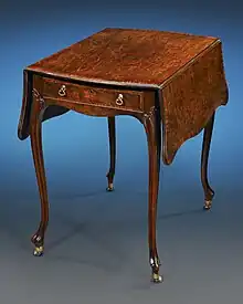 - (attributive) A style of furniture designed by, or resembling that of, Thomas Chippendale, generally of simple but graceful outline with delicately carved rococo ornamentation, sculptured either in the solid wood or, in the cheaper specimens, separately and glued on.