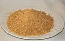 - A type of natural, unrefined or partially refined cane sugar, which is light brown in colour, particularly used in pastries and biscuits like shortbread.