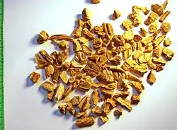- (medicine) gentian root, bitterwort root (Radix gentianae) (The root of Gentiana lutea, used in herbal medicine.)