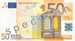 - fifty-euro banknote, 50 euro note