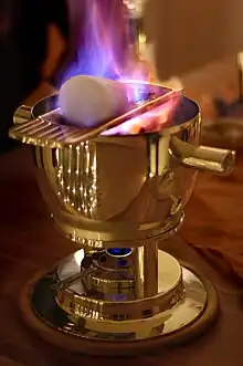 - A traditional German alcoholic drink for which a rum or arak-soaked sugar-loaf is set on fire and drips into mulled wine.