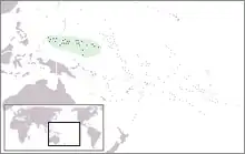 - (loosely) Micronesia (A country consisting of about 2000 islands in Oceania; official name: Mikronéziai Szövetségi Államok)