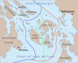 - (historical) A diplomatic dispute involving the United States and the United Kingdom over the Oregon Treaty boundary around the San Juan Islands, which began with an American farmer shooting a British company's pig in 1859.[1][2]