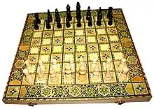 Schachbrett n (strong, genitive Schachbrettes or Schachbretts, plural Schachbretter)