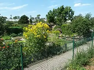 1. (horticulture) allotment (parcel of land where townspeople can grow vegetables or practice gardening as a leisure activity)