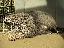 From Stíekel (“spike”) + Swien (“pig”). Akin to Dutch stekelvarken and German Stachelschwein.
