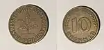 10-Pfennig-Stück mit Eichenlaub – 10-Pfennig coin with oak leaves