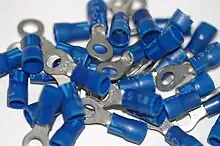 - (genericized trademark) A type of electrical connector for small diameters of electric wire which are attached to the end of the line by pressing.