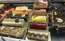 Des bûches de Noël dans la vitrine d'une patisserie (Christmas logs in the window of a pastry shop)