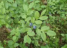 - bilberry, European blueberry, common bilberry, whortleberry (Vaccinium myrtillus)