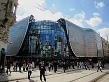 - shopping center, shopping mall, mall (area hosting multiple retail stores, especially one with outdoor common areas)