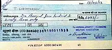 - (Australia, Canada, India, New Zealand, UK, Ireland, Hong Kong, Singapore, South Africa, Malaysia) A draft directing a bank to pay money to a named person or entity.