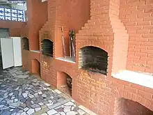 Uma churrasqueira com três churrasqueiras - A barbecue room with three barbecues.