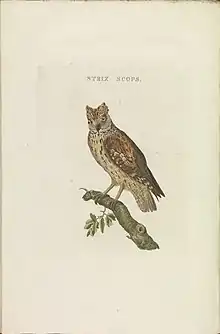 From dwerg (dwarf) + ooruil (long-eared owl); Otus scops has prominent ear tufts.
