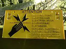 - A fence containing metal wire through which an electric current is passed, as a deterrent which will shock people or animals trying to breach or climb the fence.