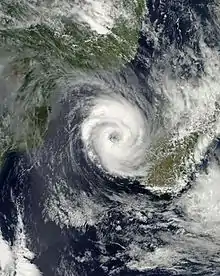 - The relatively calm and clear centre of a hurricane or other cyclonic storm.
