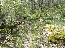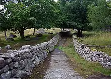 - (agriculture) a type of droveway; a walled or fenced path for livestock between the settlement and outfield