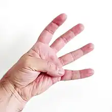 - (anatomy): index finger, forefinger; middle finger; ring finger; little finger, pinkie; thumb, hallux