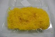 Borrowed from Portuguese fios de ovos (literally “egg threads”).