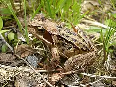 From Old Norse froskr, from Proto-Germanic *fruskaz, from Proto-Indo-European *prew- (“jump, hop”).