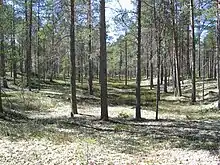 A typical jäkäläkangas. The whitish growth on the ground is lichen