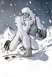 From English yeti and other languages, ultimately from Tibetan གཡའ་དྲེད (g.ya' dred, compound of གཡའ (g.ya', “rocky or rocky place”) + དྲེད (dred, “bear”), literally “rock bear”).