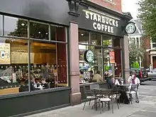- café, coffee shop (establishment selling coffee and sometimes other non-alcoholic beverages, simple meals or snacks, with a facility to consume them on the premises)