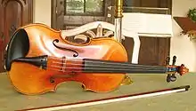 From Ottoman Turkish كمان (keman), from Persian کمان (kamân).