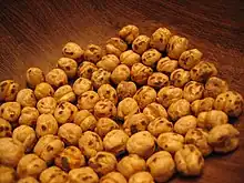From Ottoman Turkish لبلبی (leblebi, “roasted chickpea; jumbled or mashed chickpea”), from Arabic لَبْلَابِيّ (lablābiyy, “chickpea stew”).
