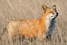 - red fox, Vulpes vulpes, a species within the family Canidae