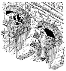 machicolation on Wikipedia.Wikipedia - “machicolation”, in Webster’s Revised Unabridged Dictionary, Springfield, Mass.: G. & C. Merriam, 1913, →OCLC.
