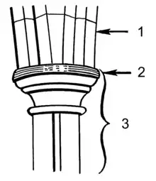 - (architecture) impost, impost block (projecting block resting on top of a column or embedded in a wall, serving as the base for the springer or lowest voussoir of an arch)